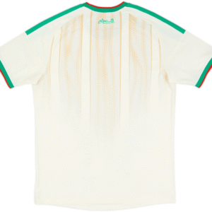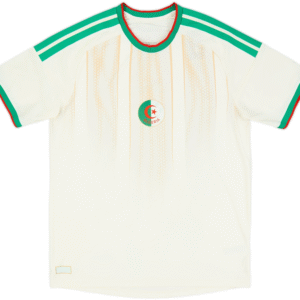A pristine white base is enlivened by intricate details inspired by Algeria’s deserts, mountains and oases. Green accents and the national emblem infuse it with vitality, perfectly embodying national pride and the country’s magnificent landscapes. Balanced, elegant and distinctly Algerian – this kit carries the rhythm of Algeria from the Sahara to the stands.